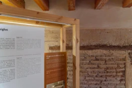 Lejos de imponer una presencia sobre la arquitectura, el diseño expositivo se integra como una presencia silenciosa pero significativa, que respeta, acompaña y estructura la experiencia del visitante. Cada decisión —material, gráfica o espacial— está en sintonía con el carácter de la alquería.